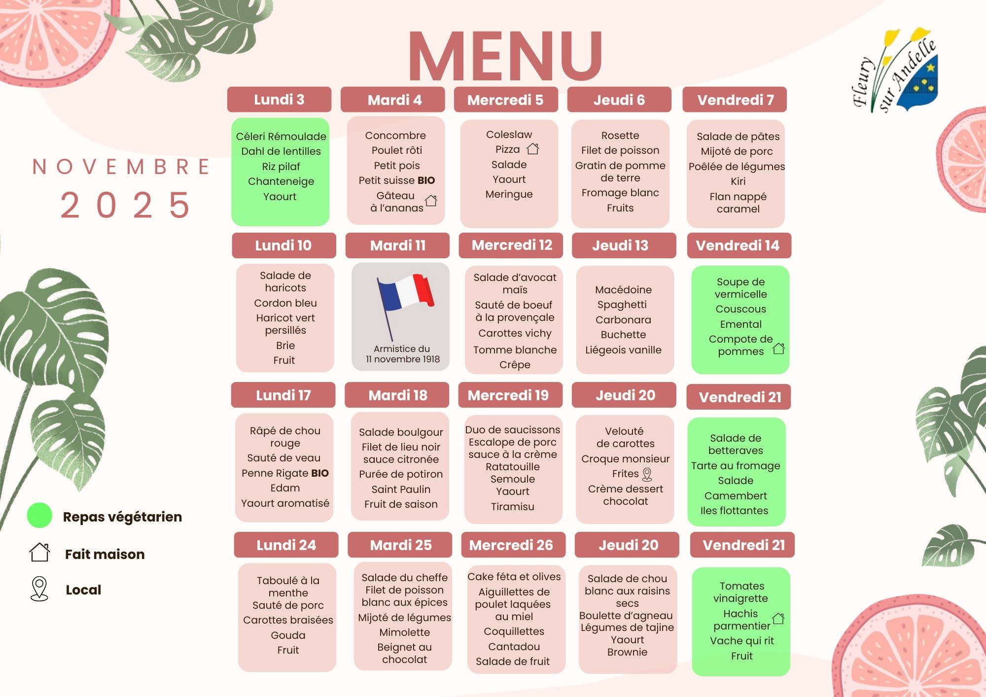 Menus du restaurant scolaire
