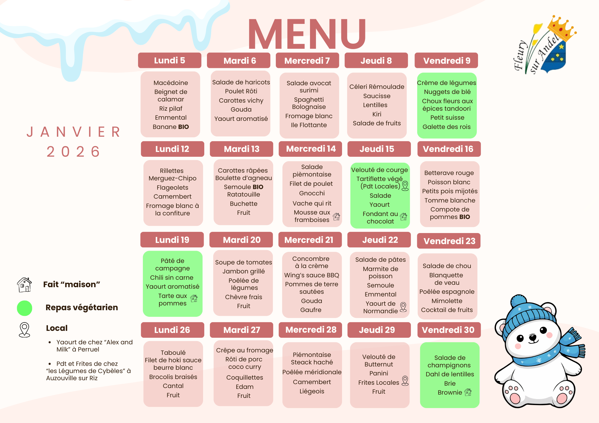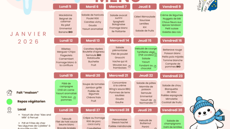 Retrouvez les menus du Restaurant Scolaire mois par mois!!!